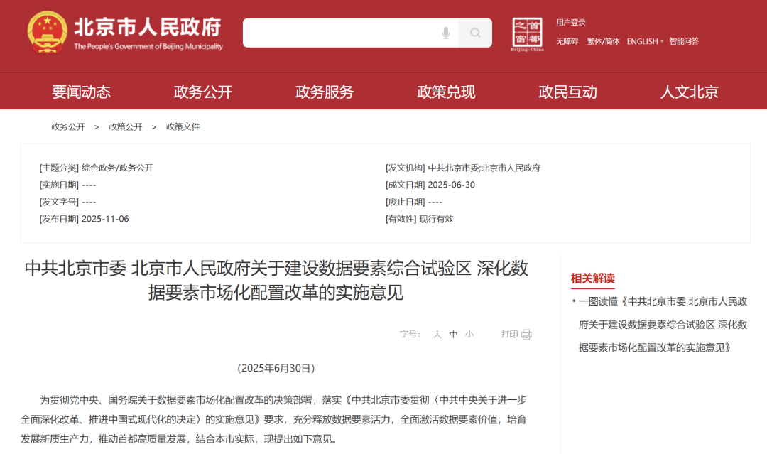 3.中共北京市委北京市人民政府发布《关于建设数据要素综合试验区深化数据要素市场化配置改革的实施意见》