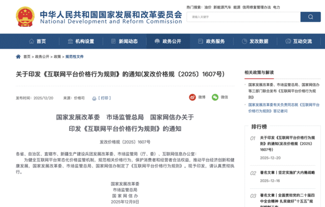 1.国家发改委等三部门联合发布《互联网平台价格行为规则》