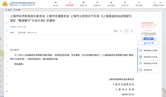 5.上海印发《上海高级别自动驾驶引领区“模速智行”行动计划》