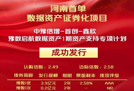 1月6日至1月7日,河南省首单数据资产证券化(ABS)产品、首单省级知识产权证券化(ABS)产品相继成功簿记,将于深圳证券交易所挂牌。两只产品均由河南中豫信用增进有限公司(以下简称中豫信增)提供增信支持,开创了数字金融赋能实体经济的新模式,为区域经济转型升级与新质生产力发展注入强劲动力。