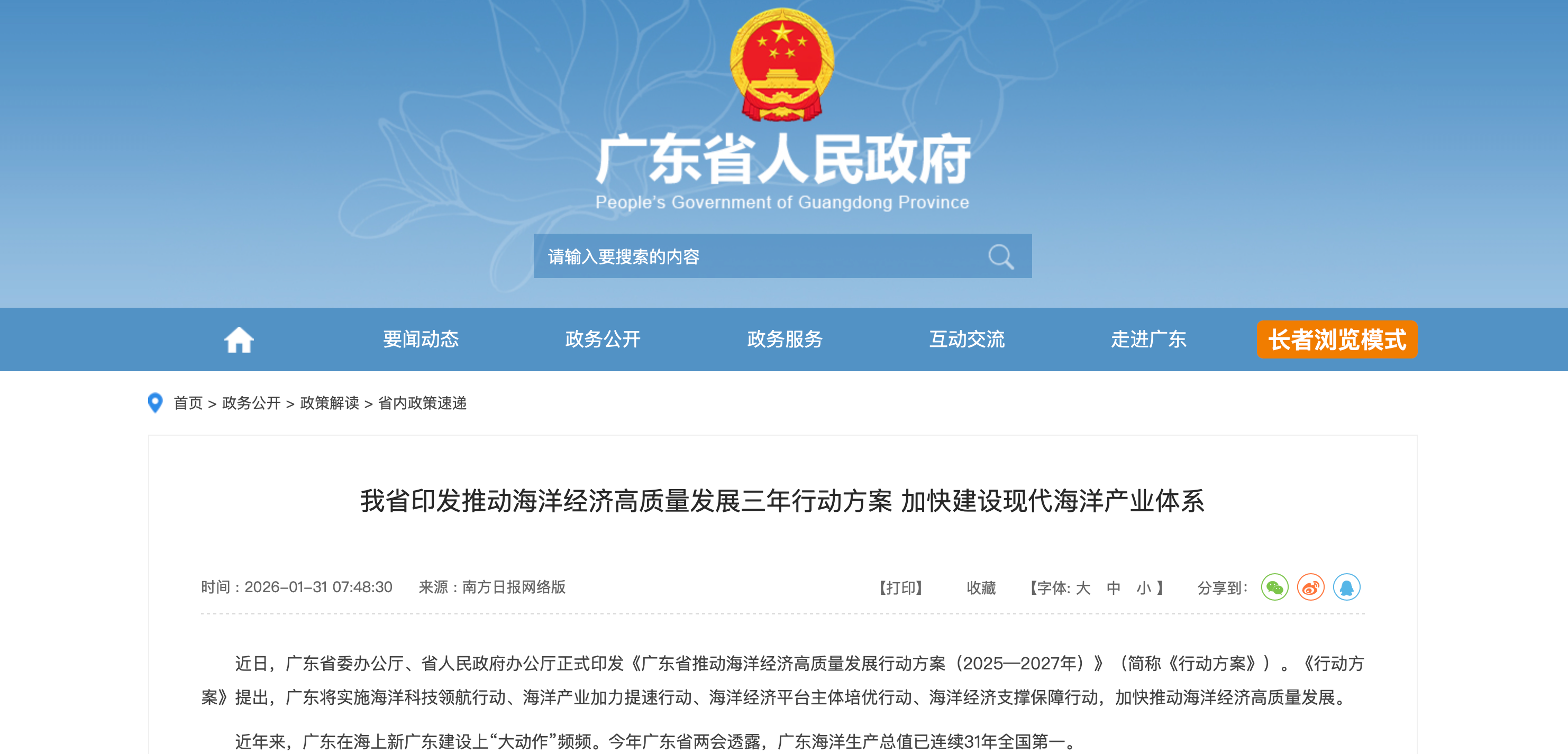 3、《广东省推动海洋经济高质量发展行动方案(2025—2027年)》发布
