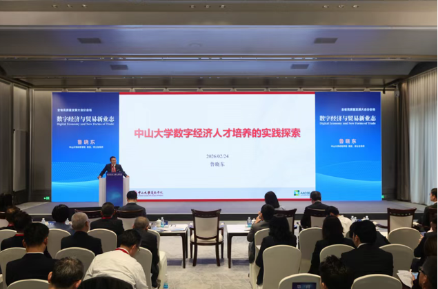 2月24日,2026年广东省高质量发展大会“数字经济与贸易新业态”分会场在广州举办,中山大学岭南学院副院长鲁晓东教授受邀出席,并作《中山大学数字经济人才培养的实践探索》主题报告,为广东数字贸易发展注入人才培养新思路