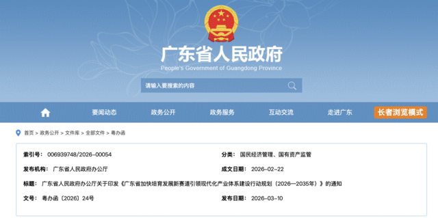 近日,广东正式发布《广东省加快培育发展新赛道引领现代化产业体系建设行动规划(2026—2035年)》,围绕智能链接、生物融合、先进制造、空间拓展、未来能源、品质生活六大领域,重点布局53个新赛道。